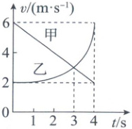 7. 甲、乙两辆汽车在同一平直公路上行驶,t = 0 时刻两车正好相遇,0~4 s 时间内两车的 v - t 图像如图所示。关于这段时间内两车的运动情况,下列说法正确的是( )