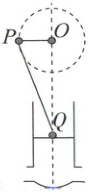 9. 曲柄连杆结构是发动机实现工作循环和完成能量转化的主要部件。如图所示,连杆下端连接活塞Q,上端连接曲轴P。在工作过程中,活塞Q在汽缸内上下做直线运动,带动曲轴绕圆心O旋转,若P做线速度大小为$v_{0} = 12m/s$的匀速圆周运动,已知$OP:PQ = 3:4$,则下列说法正确的是( )