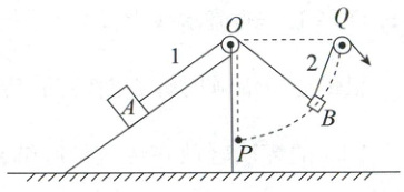 7. 如图所示,水平地面上固定一表面粗糙的斜面体,斜面体顶端安装有定滑轮,轻绳1跨过定滑轮,一端连接物体A,另一端连接物体B;轻绳2绕过定滑轮,一端连接物体B,另一端人为控制。现让物体B缓慢由O点正下方P点沿虚线靠近Q点,O点和Q点等高,轻绳1一直处于张紧状态且物体A始终保持静止,不计空气阻力以及绳与滑轮间的摩擦力,滑轮大小可忽略,在物体B由P点运动到Q点的过程中,下列说法正确的是( )