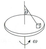 10. 如图所示,水平转台上有一个质量为m的物块,用长为L的轻质细绳将物块连接在转轴上,细绳与竖直转轴的夹角$\theta$为45°,此时绳绷直但无张力,物块与转台间的动摩擦因数为$\mu=\frac{1}{2}$,最大静摩擦力等于滑动摩擦力,物块随转台由静止开始缓慢加速转动,角速度为$\omega$,重力加速度为g,则( )
