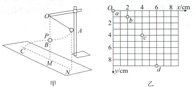 (1)由题图乙可知,四个点间竖直方向的位移之比为$1:3:5$,根据初速度为零的匀变速直线运动的规律可知,$a$点的竖直速度为$0$,即$a$点是小球的抛出点。