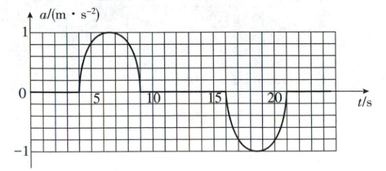 12.BCD 本题主要考查超重和失重的分析 乘电梯下楼过程,乘客先加速后匀速再减速,以向下为正方向,有$mg - N = ma$,由题图可知,$t = 5s$时加速度大于零,乘客所受重力大于支持力,处于失重状态,$9\sim16s$时间内加速度为零,电梯做匀速运动,$t = 17s$时加速度小于零,电梯内的乘客处于超重状态,A错误,B、C正确;由题图可知,在$t = 9s$时,加速度减小为零,此时电梯速度最大,$v - t$图像与时间 轴所围成的面积表示电梯的速度变化量,通过数格法和每个格表示的速度变化量可知电梯下行的最大速度大于$2.5m/s$,D正确。