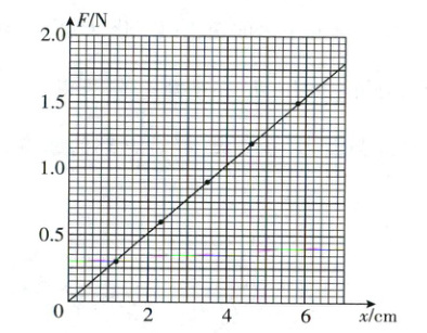 (2)$F - x$图像斜率大小代表弹簧劲度系数,计算可得$k = 26N/m$。