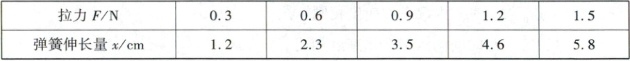 (1)根据实验数据在坐标纸上作出拉力$F$跟弹簧伸长量$x$关系的$F - x$图像。