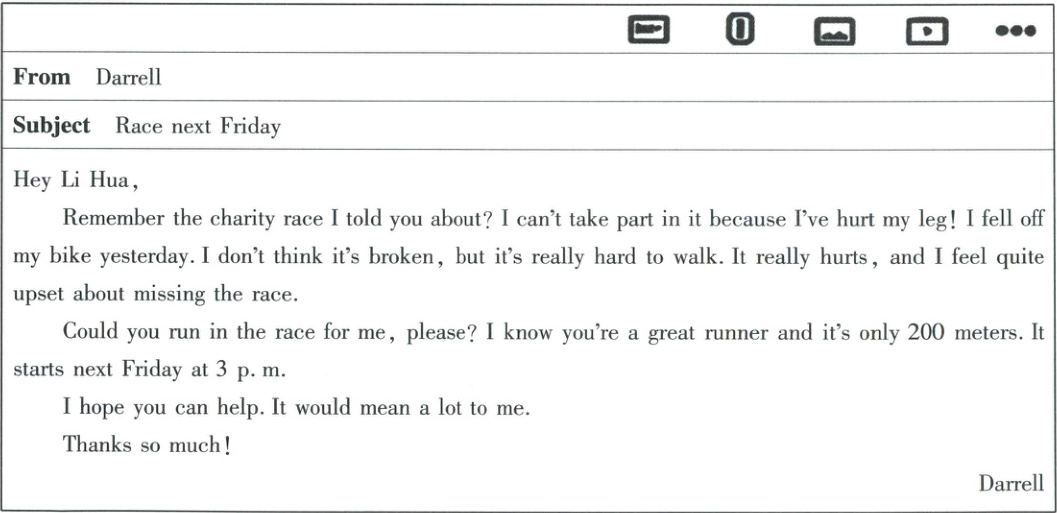 76. 假如你是李华,请你对你校英国交换生 Darrell 的邮件进行回复。词数 80 左右,可适当增加细节,以使行文连贯。