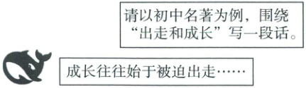 (2)(4分)示例一 原因推测:训练数据包含错误信息。 具体建议:用不同模型回答,实现交叉验证,如同一问题问不同AI,比对辨析,获得更全面的认识。 示例二 原因推测:小鹿只输入三个词语,指令模糊,可能触发AI的“自由发挥”。 具体建议:优化提问方式,如发布任务“整理初中红色经典名著中的英雄语录”,定义目标“形成对红色精神的理解”,提供格式“人物(名字)事迹—语录—分析精神”。 (原因推测2分,具体建议2分,结合材料补充即可) 6 【参考答案及评分标准】(4分)示例 能。三则材料指向AI幻觉导致生成的内容与现实世界事实不一致,会误导用户,如果过于相信AI可能导致安全风险,用户需对AI答案持谨慎辨析态度,并通过科学提问降低幻觉。材料A、B指向AI幻觉在创造性任务中为创作提供灵感和创新方向,能帮助小鹿一分为二地思考、更全面正确地评价“AI幻觉”。(观点1分;理由3分,分析三则材料共性2分,结合题干所给材料分析1分) 【解析】本题考查材料内容的提炼与概括。解答本题,首先理解三则材料的叙述重点,材料一通过具体案例解释了AI幻觉的两种类型(事实性幻觉、忠实性幻觉),材料二分析了AI幻觉的根源(概率驱动的本质、训练数据局限性、用户输入模糊性),材料三则提供了减少AI幻觉的实用建议(优化提问方式、要求大模型分批输出结果、交叉验证同一问题的不同回答);三则材料共同指向一个问题,即AI幻觉容易出现,且其会产生错误或不相关内容,误导用户,用户需要谨慎对待。然后分析题中所给的A、B两句话,它们都呈现了AI幻觉在特定领域的积极意义。所以材料A、B能帮助小鹿从正反两方面更全面地思考,进而正确评价“AI幻觉”,达成研究目的。 7 【参考答案及评分标准】(5分)示例一 认同。《西游记》中孙悟空的成长与被迫出走密不可分。他之前大闹天宫、地府,冲动、鲁莽、任性;后因打死白骨精和草寇而被唐僧误会、驱逐,被迫出走,在痛苦矛盾中意识到对师父、团队的情意和责任,更坚定佛心,学会了寻求解决问题的方式。成长往往始于被迫出走,成于痛苦的磨砺。 示例二 不认同。《简·爱》中简·爱的蜕变本质是主动的精神觉醒。离开桑菲尔德看似是因罗切斯特已婚而被迫逃亡,实则是她以“我关心我自己”为信条的道德自律,是对依附关系的彻底割席。即便在“出走”的表象下,她的每一次抉择都源于对尊严与平等的捍卫。最终,她带着经济独立与灵魂丰沛重返爱人身边,从“被庇护者”跃升为“拯救者”,完成了从被动生存到主动掌控命运的成长闭环。(观点1分,结合名著内容3分,体现成长的过程1分,言之有理即可) 【解析】本题考查拓展与运用。解答本题,首先需要明确是否认同AI“成长往往始于被迫出走”这一观点,然后结合指定名著或自选名著进行阐述。“成长往往始于被迫出走”强调成长是在外部因素的推动下,离开舒适区而发生的。在作答时,要围绕人物是否因被迫走出某个环境、状态等而获得成长展开分析。若认同观点,需详细说明人物被迫出走的具体情节以及由此带来的成长表现;若不认同观点,要阐述人物是通过主动选择而非被迫出走实现成长的,同样要结合具体情节说明。