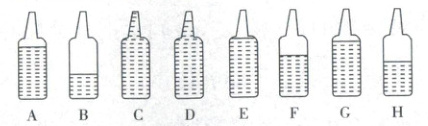 8. 在班里举行小型音乐会,张刚同学在 8 个相同的水瓶中灌入不同高度的水(如图所示),敲击它们,就可以发出“1、2、3、4、5、6、7、i”的声音。这些声音的_不同。但瓶子的顺序排乱了,正确的瓶子编号是_。