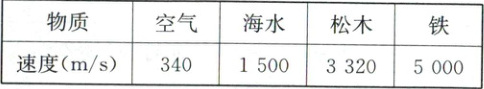 22. 利用声速进行定位测距是一项重要的技术,现查阅资料得到声音在某些物质中的传播速度如下表所示。请你根据以下信息计算,用超声测位仪向海底垂直发射声波,如果经4s接收到来自大海底部的回波信号,则该处的海深为多少m?