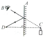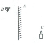 7. 如图所示,A是平面镜,B是镜前人眼睛的位置,C是人眼睛在平面镜前看到的烛焰像上的一点。根据平面镜成像的特点作出像点C对应的物点D。完成眼睛看到C的光路图(画一条入射光线和反射光线即可)。