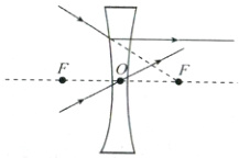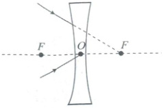 7. 如图所示,请在图中作出两条入射光线经凹透镜折射后的折射光线。