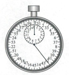 12. 如图是小明用秒表测十次脉搏的时间,课间升旗仪式小明想到用脉搏来估测国旗升至旗杆顶的时间。从国旗上升直至旗杆顶测得脉搏 39 次,则国旗升至旗杆顶的时间最接近的是(