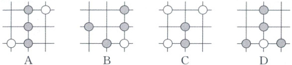 1. 围棋起源于中国,古代称之为“弈”,至今已有四千多年的历史,下列由黑白棋子摆成的图案是轴对称图形的是(