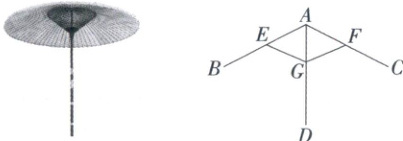 2. 我国传统工艺中,油纸伞制作非常巧妙,其中蕴含着数学知识.如图是油纸伞的张开示意图,$AE = AF$,$GE = GF$,则$\triangle AEG\cong\triangle AFG$的依据是(