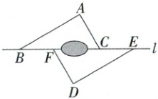 19. 【日常生活情境·测量】小明和小亮准备用所学数学知识测一池塘的长度,经过实地测量,绘制如图,点 B,F,C,E 在直线 l 上(点 F,C 之间的距离为池塘的长度),点 A,D 在直线 l 的异侧,且 AB//DE,∠A = ∠D,测得 AB = DE.