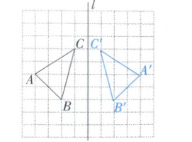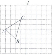 16. 如图,在方格纸中,每个小正方形的边长均为 $ 1 $ 个单位长度,$ \triangle ABC $ 的三个顶点就是小正方形的格点. 将 $ \triangle ABC $ 沿直线 $ l $ 作轴对称变换得到 $ \triangle A'B'C' $.