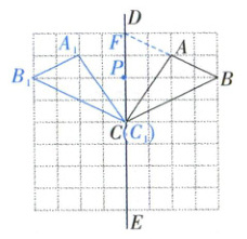 (1)画出 $ \triangle ABC $ 关于直线 $ DE $ 的轴对称图形 $ \triangle A_1B_1C_1 $;