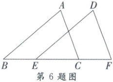 6. 如图,在$\triangle ABC$和$\triangle DEF$中,B,E,C,F 四点在同一直线上,$BE=CF,∠B=∠DEF$,添加下列条件,不能判定$\triangle ABC\cong \triangle DEF$的是(