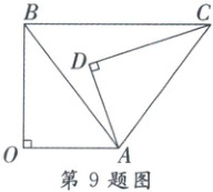 9. 如图,已知$\triangle AOB\cong \triangle ADC,∠O=∠D=90^{\circ }$.记$∠OAD=\alpha ,∠ABO=\beta $,当$BC// OA$时,α与β之间的数量关系为(