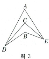 (3)如图 3,DC 平分∠ADB,EC 平分∠AEB,若∠DAE = 50°,∠DBE = 130°,求∠DCE 的度数。