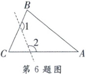 6. 如图,在△ABC 中,∠C = 70°,则∠1 + ∠2 的度数为 (