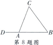 8. 如图,在△ABC 中,∠B = ∠C,∠BAC = ∠B + 15°,∠DAC 是△ABC 的外角,则∠DAC 的度数是 (