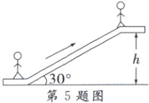 5. 【日常生活情境·自动扶梯】如图,这是某自动扶梯的示意图,已知大厅两层之间的距离 $h = 6$ m,自动扶梯的倾斜角为 $30^{\circ}$,若自动扶梯的运行速度为 $0.4$ m/s,则顾客乘自动扶梯上一层楼的时间为(