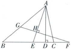 7. 如图,AD,AE分别是△ABC的高和角平分线,∠B=40°,∠ACB=80°.点F在BC的延长线上,FG⊥AE,垂足为H,FG与AB相交于点G.