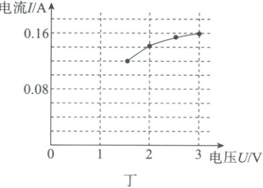 。(2)某次测量中,电压表示数为 1.5 V 时,电流表示数如图丙所示,此时电流大小为
