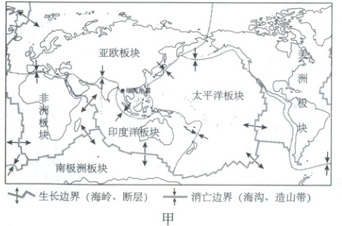 (1)由图甲可知,缅甸位于亚欧板块和印度洋板块的交界处,地壳不稳定,多地震。