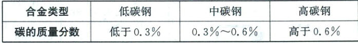 (2)为了探究制作修剪刀的碳钢合金(含 ${Fe}$、${C}$ 两种元素)类型,兴趣小组取制作修剪刀的废料进行了实验检测:取样品 $1.00$ 克与足量的稀硫酸充分反应后,收集到 $428$ 毫升(按 $0.035$ 克计)氢气。通过计算并结合下表判断修剪刀材质属于哪种合金类型?