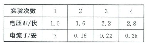 调至阻值最大处。(2)闭合开关,移动滑动变阻器的滑片,当电压表的示数为 1.0 伏时,电流表示数如图乙所示。读出电流为