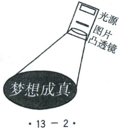 21. (4分)如图所示的“梦想成真”是投影灯中图片在地上所成的像。当图片处于凸透镜一倍焦距和两倍焦距之间时,地面上所成像的性质为倒立、