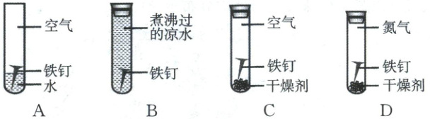 9.A 【解析】铁锈蚀的条件 铁在氧气、水并存时易生锈[易错点]。实验 A 中的铁钉与氧气、水同时接触,发生锈蚀,A 项正确;实验 B 中的铁钉只与水接触,缺少氧气,不会发生锈蚀,B 项错误;实验 C 中的铁钉只与氧气接触,缺少水分,不会发生锈蚀,C 项错误;实验 D 中的铁钉与氧气、水均未接触,不会发生锈蚀,D 项错误。