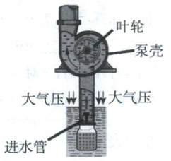 10. 洪涝灾害后,排涝是恢复生产生活的重要工作。如图为离心式水泵结构图,泵内灌满水后启动叶轮,下列分析正确的是(