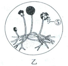 (2) 黑根霉是一种腐生于面包、馒头和米饭上的真菌。选用显微镜观察,图乙中⑤是________。