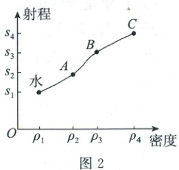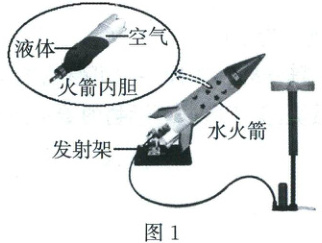 24. (8 分)学校科技节开展水火箭比赛,同学们通过查阅资料得知:水火箭射程与瓶内液体占总体积比例、瓶内气压和发射角度等因素有关。除上述因素外,为研究水火箭射程与瓶内液体质量的关系,其兴趣小组通过只改变液体的密度来改变其质量,并用图 1 装置和有关测量工具进行如下实验。
