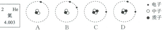2. 氦元素在元素周期表中的信息如图所示。下列能表示氦原子的微粒模型的是(