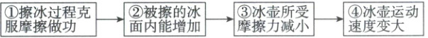 11. 冰壶比赛中,运动员将冰壶推出后,有时队员会在冰壶行进路线前擦冰面,如图所示。擦冰主要是为了使冰融化,改变冰壶运动状态。对擦冰过程及其带来的影响分析如下: