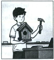 Oh, no! That was me! With legs shaking, I carried my birdhouse 38 to the front. "I'll show you how to build a birdhouse," I began, keeping my eyes down.