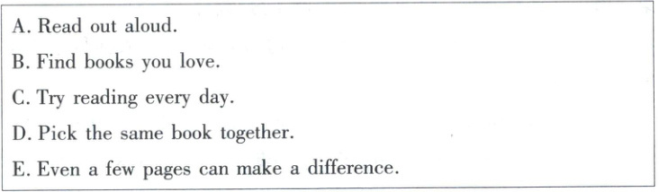 ),将其序号填入第 31—34 小题,并回答第 35 小题。Reading opens doors to new worlds, develops your imagination, and even helps you do better in school. But getting started can be a little bit difficult. Here are some easy, enjoyable ways to make reading a natural part of your daily life.