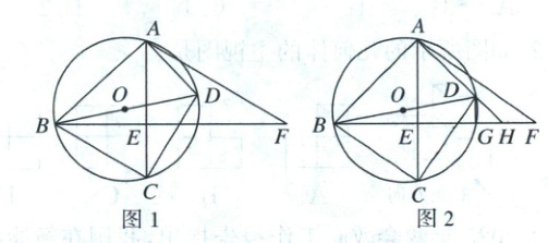 (3)如图2,在(2)的条件下,$BF$与$\odot O$交于点$G$,与$AD$的延长线交于点$H$,连接$DG$.