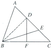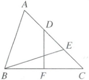 15 $2\sqrt{2}$ 【解析】等腰三角形的性质+等腰直角三角形的判定与性质 如图,连接$BD$(巧作辅助线:连接线段,构造等腰直角三角形,为解直角三角形提供条件),$\because$点$D$,$E$把线段$AC$三等分,$\therefore EC = DE = AD = \frac{1}{3} AC = \frac{1}{3} × 6 = 2$. $\therefore DC = 2EC = 4$. $\because BE = AB$,$AD = DE$,$\therefore BD \perp AE$(技巧:当遇到等腰三角形且需要研究底边相关线段或角度时,常见思路是利用“三线合一”的性质). $\therefore \angle BDC = 90^{\circ}$. 又$\because \angle C = 45^{\circ}$,$\therefore \triangle DBC$是等腰直角三角形. $\because F$是$BC$的中点,$\therefore DF \perp BC$. $\therefore \angle DFC = 90^{\circ}$. $\therefore DF = DC · \sin C = 4 × \frac{\sqrt{2}}{2} = 2\sqrt{2}$.