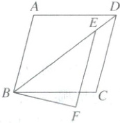 16. 如图,在菱形$ABCD$中,点$E$在对角线$BD$上,$BE = 8$,$DE = 2$,将边$AB$平移至$EF$,点$A$的对应点为点$E$,连接$BF$,若$\angle F = 90^{\circ}$,则$AB$的长为________.