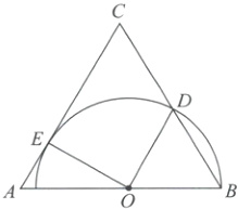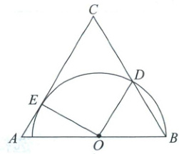 (1)证明:如图,因为AB=AC,所以∠B=∠C.因为OB=OD,所以∠B=∠ODB.所以∠C=∠ODB.所以OD//AC.因为AC是切线,所以OE⊥AC.所以OD⊥OE. (3分)