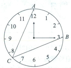 13. 如图,小丽用卡纸仿制了一个钟表,她用铅笔在卡纸钟面的圆周上确定了三个点 $A$,$B$,$C$,其中 $A$,$B$ 两点分别与钟面 12,3 两个时刻的刻度点重合,连接 $AC$,$BC$,则$\angle ACB =$