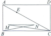 16. 如图,在矩形 $ABCD$ 中,已知$\dfrac{AB}{BC} = \dfrac{3}{5}$,点 $E$ 是对角线 $AC$ 上一动点,边 $AB$ 绕点 $E$ 按逆时针方向旋转 $90^{\circ}$ 得到线段 $MN$,连接 $BN$,$CM$. 当点 $M$ 落在边 $BC$ 上时,$\dfrac{BN}{CM}$ 的值为____________.