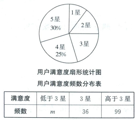 21. (本小题满分8分)某公司开发了一款App,为了解用户对该款App的满意度,随机抽取部分使用过这款App的用户进行调查.满意度分为5个等级,分别为:1星,2星,3星,4星,5星.现将收集到的数据整理后描述如下: