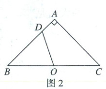 (2)如图2,已知$\angle BAC = 90^{\circ}$,$AB = 4$,$AD = 1$.若点$F$在边$AC$上,$OF = OD$,求$AF$的长.
