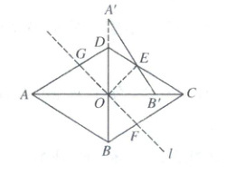 ∴ $OA = OC = 5k$,$OB = OD = 3k$。如图,连接 $A'D$,$OE$,记直线 $l$ 分别交 $BC$,$AD$ 于点 $F$,$G$,