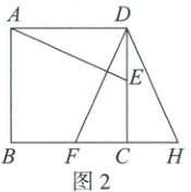 (2) 如图 2,在正方形 ABCD 中,点 E,F 分别在边 DC,BC 上,AE=DF,延长 BC 到点 H,使 CH=DE,连接 DH. 求证:∠ADF=∠H.